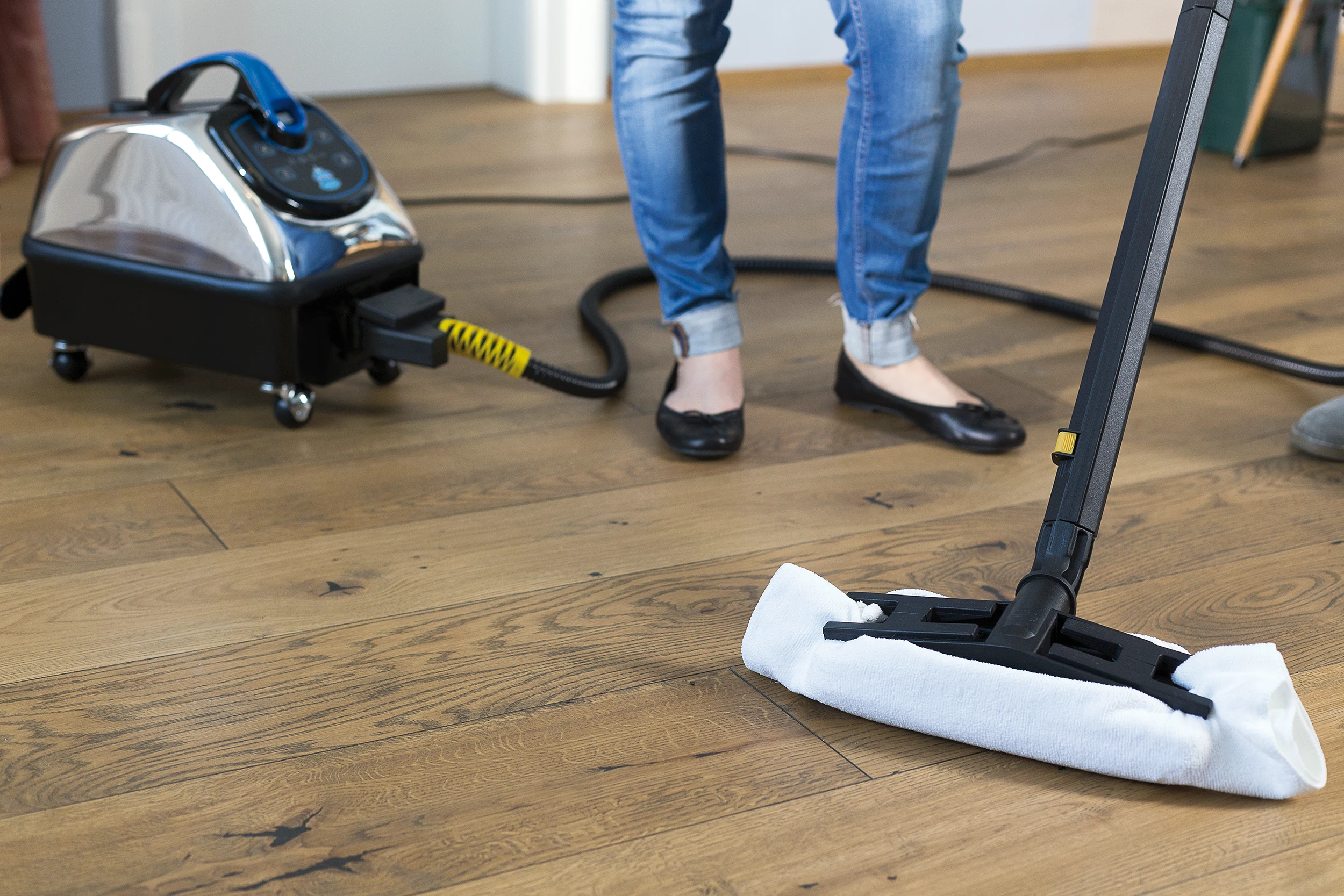 - Schneller sauber, da Dampf gleichzeitig reinigt und desinfiziert.